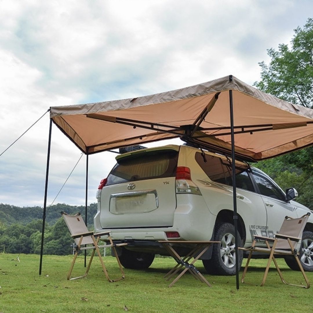 This superfine awning is quick to set up and provides shade on the side as well as the rear of the vehicle. Suitable for cars, campers, caravans and many other applications.