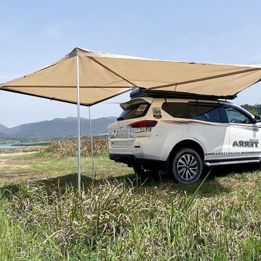Deze superfijne luifel is snel op te zetten en biedt schaduw aan de zijkant maar ook aan de achterzijde van het voertuig. Geschikt voor auto's, campers, caravans en vele andere toepassingen.